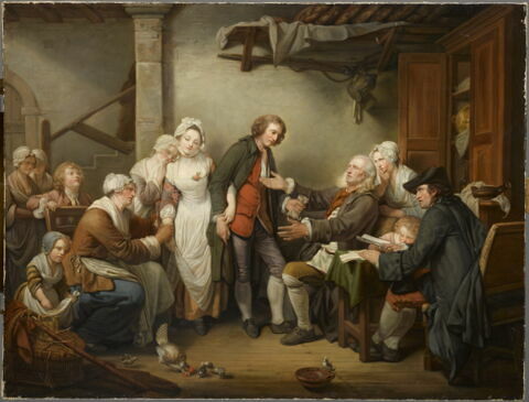 Exposé au Salon de 1761 sous le titre : "Un mariage, et l'instant où le père de l'Accordée délivre la dot à son gendre".