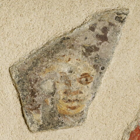 105,3 : PEINTURE MURALE(FRAGMENT) ; DESCRIPTION : MASQUE(?) 6,8 x 6